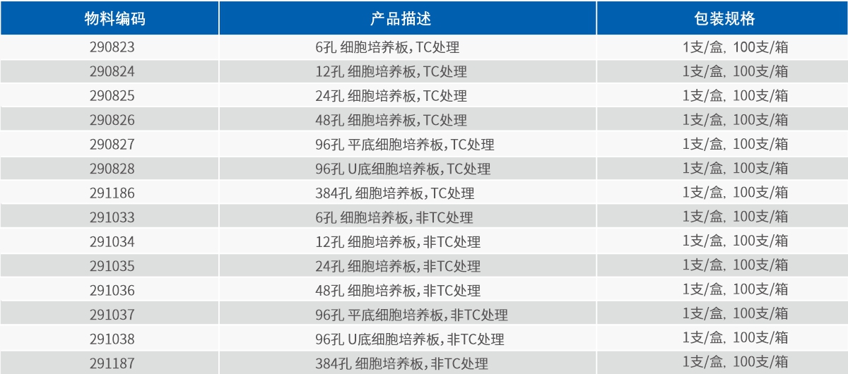 ※ 高品质聚苯乙烯(ps)原料,符合USP VI的医用级别,优异的光学和化学特性在保证产品稳定的同时也便于显微镜下观察 ※ 真空等离子表面处理,保证孔间一致性 ※ 产品通过GB/T16886生物相容性测试,并达到无菌、无内毒素要求 ※ 盖子和板底结合松紧适中,保证气体交换,降低蒸发量和交又污染的风险 ※ 孔旁刻有指示的字母和数字,便于区分识别